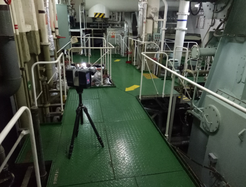 新加坡貨輪掃描現(xiàn)場,利用三維激光掃描儀對貨輪復(fù)雜結(jié)構(gòu)進(jìn)行3D掃描
